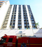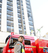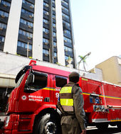 2014.06.22 04: 52화재 발생한 한국 기자단 호텔을 경비하는 브라질 경찰