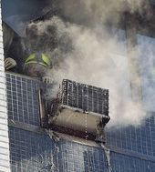 2014.06.22 05: 09한국 기자단 숙소 화재를 진압하고 힘겨워 하는 브라질 소방관