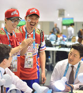 2014.06.23 03: 27[대한민국-알제리]프레스센터 찾은 유재석 노홍철에 김성주 미소만