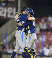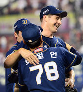 2014.06.24 22: 46노히트노런 달성 찰리,'안방마님 김태군과 감격의 포옹'