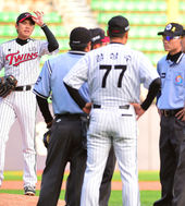 2014.06.24 19: 16보크 항의 양상문 감독,'오늘 경기가 안 풀리네'