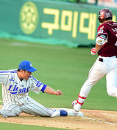 2014.06.24 19: 01강정호, '채태인, 어랏! 볼이 빠지네'