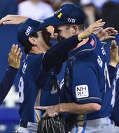 2014.06.24 21: 39노히트노런 달성 찰리,'대기록 도우미 수비수들과 감격의 포옹'
