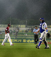 2014.06.24 21: 27이승엽, '비가 제법 오는데'