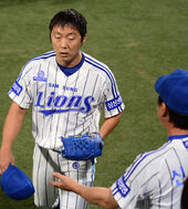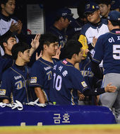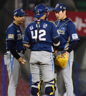 2014.06.25 20: 44이재학,'임무 마치고 동료들의 격려 받으며'