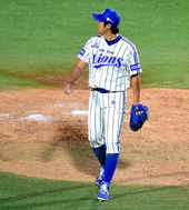 2014.06.25 21: 02미소 지으며 더그아웃으로 향하는 배영수