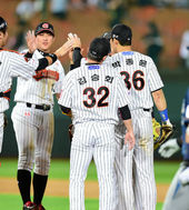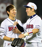 2014.06.27 22: 34활짝 웃는 정수빈-이원석,'경기 내용 너무 좋아~'