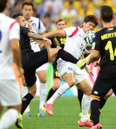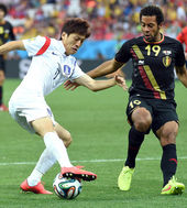 2014.06.27 05: 12[한국-벨기에]페인팅 모션으로 벨기에 선수를 제치는 이청용