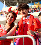 2014.06.27 04: 51[대한민국-벨기에]벨기에 女축구팬 '한국! 멋진 경기해요~'