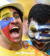 2014.06.29 08: 43[콜롬비아-우루과이]화려한 페이스페인팅한 우루과이 축구팬