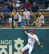 2014.07.01 19: 43펜스 타며 홈런성 타구 잡아내는 이대형