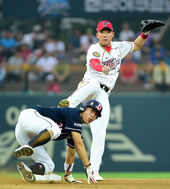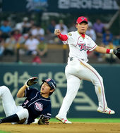 2014.07.01 19: 25안치홍, '정수빈 슬라이딩 피하며 병살 처리'