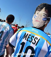 2014.07.02 00: 40[아르헨티나-스위스]메시의 탈과 유니폼 입고 응원해요
