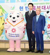 2014.07.03 11: 36현빈,'인천AG 물범 마스코트와 함께'