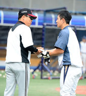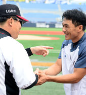 2014.07.04 16: 19손시헌과 반갑게 인사 나누는 양상문 감독