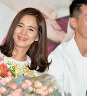 2014.07.04 16: 21남편 션에게 꽃다발 받은 정혜영,'행복한 미소'