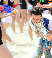 2014.07.04 14: 01워터파크에 나타난 지드래곤,'미녀의 물총받으며'