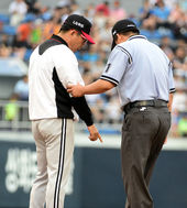 2014.07.05 18: 23투구판 위치 어필하는 양상문 감독