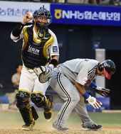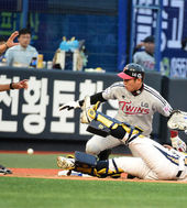 2014.07.05 19: 31홈에서 태그아웃 당하는 박용택, '늦었다'