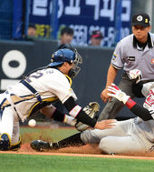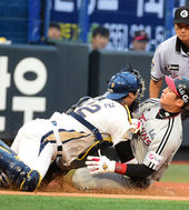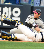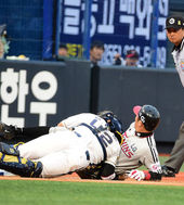2014.07.05 19: 12김태군과 충돌하는 오지환, '홈이 아닌 3루에서'