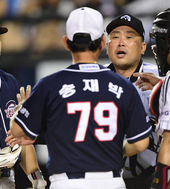 2014.07.09 21: 53최경철-오재원, '신경전이 말다툼으로'