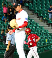 2014.07.09 21: 56김주찬에게 솔로포 허용후 마운드 내려온 엄정욱