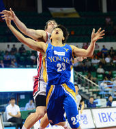 2014.07.09 15: 36문성곤-한희원,'격렬한 골밑 사투'