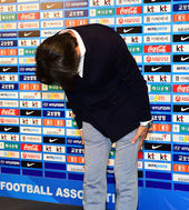 2014.07.10 10: 30고개숙여 인사하는 홍명보 감독,'자진 사퇴 합니다'