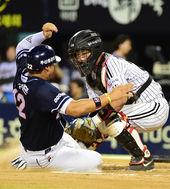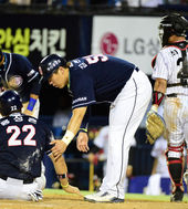 2014.07.10 21: 09홍성흔-최경철, '홈 충돌'