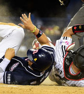 2014.07.10 21: 12홍성흔-최경철 홈 충돌 결과는 아웃