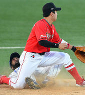 2014.07.11 19: 211타점 2루타 나바로,'가랑이 사이로 정확하게 터치'