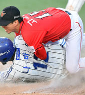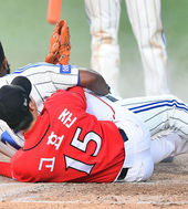 2014.07.11 19: 28고효준,'몸 아끼지 않는 홈블로킹'