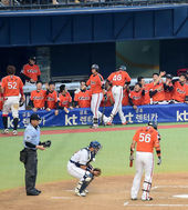 2014.07.11 19: 35'피에 스리런포'에 환호하는 한화 더그아웃