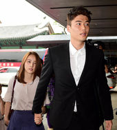 2014.07.12 13: 36기성용-한혜진 부부,'손잡고 함께 이청용 결혼식 참석'