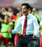 2014.07.12 21: 04환호하는 최용수 감독, '뒤로 넘어질라'
