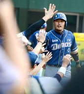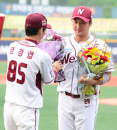 염경엽 감독,'택근아 홈런 100호 달성 축하한다'