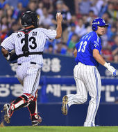 2014.07.16 20: 52김태완,'고효준을 상대로 스리런포!'