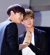 2014.07.16 16: 39엑소 찬열-세훈, '이마 맞대고 훈훈하게'