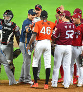 2014.07.18 22: 46손아섭,'우수타자상 나지완 향한 쿵푸킥'