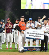 2014.07.18 22: 42프로야구 9개 구단 감독,'세월호 희생자 위로 기부금 전달'(프로야구 올스타전)