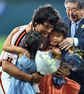 2014.07.18 22: 49박찬호,'사랑하는 딸들과 포옹하며'(프로야구 올스타전)