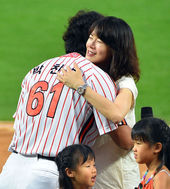 2014.07.18 19: 35은퇴 박찬호,'아내와 가슴 뭉클한 포옹'