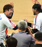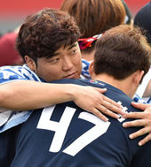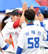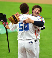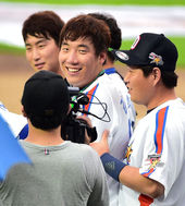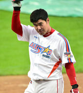 2014.07.18 18: 24임창용,'김현수! 홈런왕 축하해'(프로야구 올스타전)