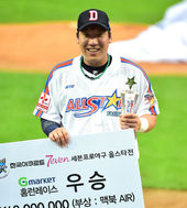 2014.07.18 18: 28히메네스,'홈런왕 김현수 축하해'(프로야구 올스타전)