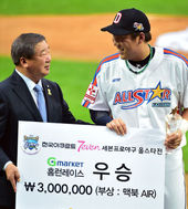KBO 구본능 총재,'김현수 선수! 홈런왕 축하해요'(프로야구 올스타전)