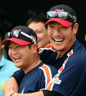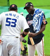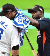 2014.07.18 17: 29피에,'히메네스 형! 땀 닦고 해요'(프로야구 올스타전)