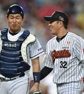 2014.07.18 21: 06양의지-김승회,'이렇게 호흡 맞추니 기분 좋네'(프로야구 올스타전)