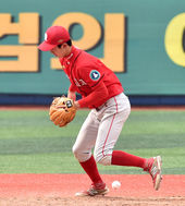 수비 실책 범하는 박효준,'아차!'