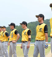 2014.07.20 13: 23환호하는 한빛소프트-안양GMB,'니베아 맨 야구대회 파이팅'