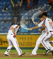 2014.07.22 23: 36끝내기 물세례 받는 정현석,'감동의 4연승!'
